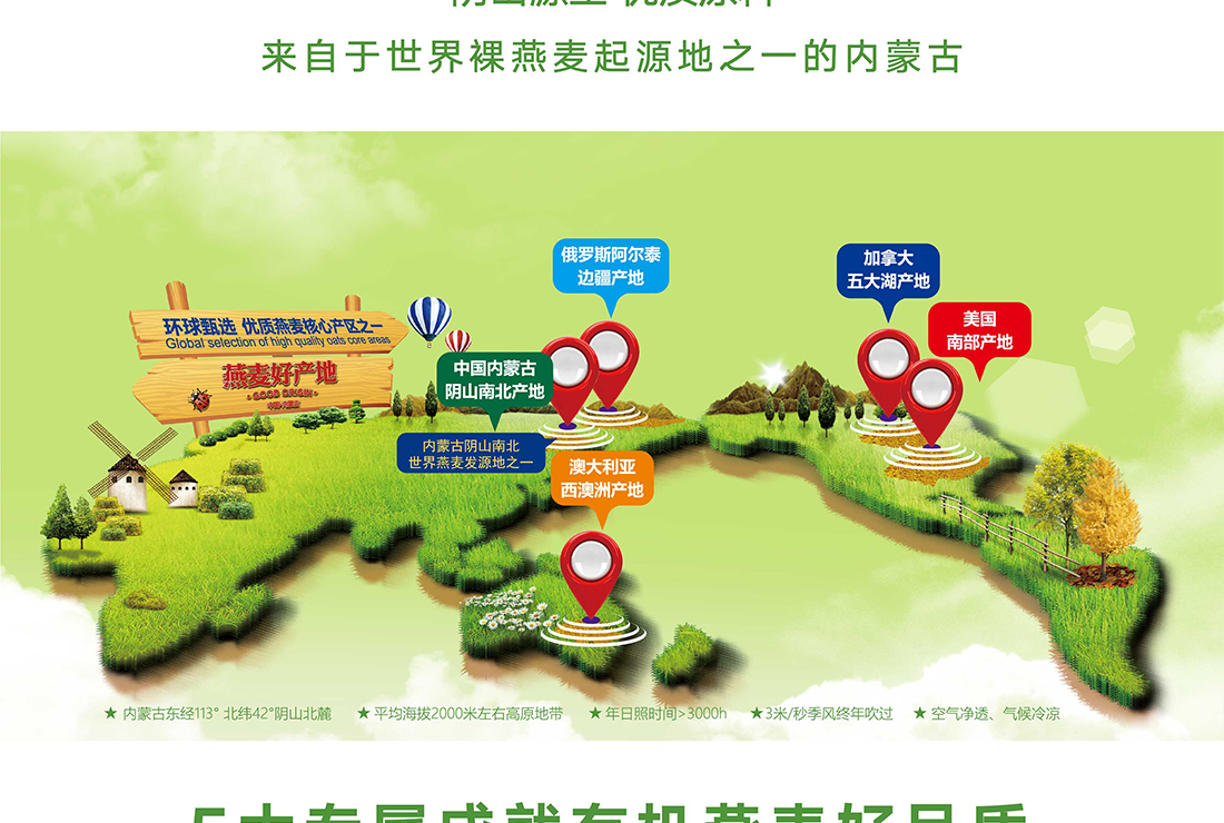內(nèi)蒙古,世界裸燕麥起源地之一;陰山源生燕麥在初出生滿足生長(zhǎng)規(guī)律一切所需,高寒、高海拔、日照充足;遵循自然法則,靠天滋養(yǎng),自然生長(zhǎng);