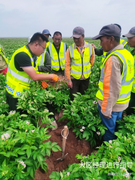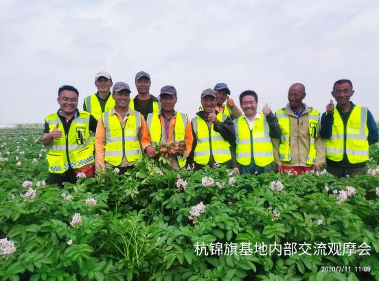 (通訊員 宋江江)2020年7月11日,民豐種業(yè)杭錦旗農場組織開展內部觀摩交流活動?;顒佑纱髤^(qū)經理、農藝師、管理員、基地經理、機手等13人參加,在大區(qū)經理門大偉的帶領下大家對各地塊馬鈴薯問題進行的探討、研究,針對各基地問題做到早發(fā)現(xiàn),早溝通,早預防,就重大問題進行立項研討并提出改進方案及措施。同時,對管理成就突出的地塊進行現(xiàn)場學習,共享田間管理方面、經驗及做法。