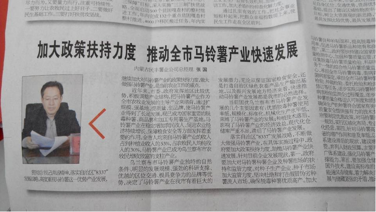 張國(guó)表示,民豐薯業(yè)將堅(jiān)定貫徹總書(shū)記講話(huà)精神,落實(shí)自治區(qū)“8337”發(fā)展戰(zhàn)略,充分發(fā)揮龍頭企業(yè)帶動(dòng)、幫扶作用,為推動(dòng)我市馬鈴薯產(chǎn)業(yè)快速發(fā)展做出新貢獻(xiàn)。