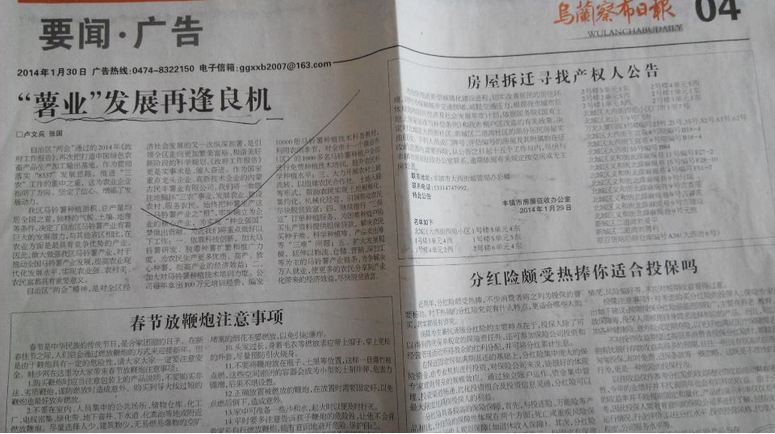 烏蘭察布日?qǐng)?bào) 要聞·廣告