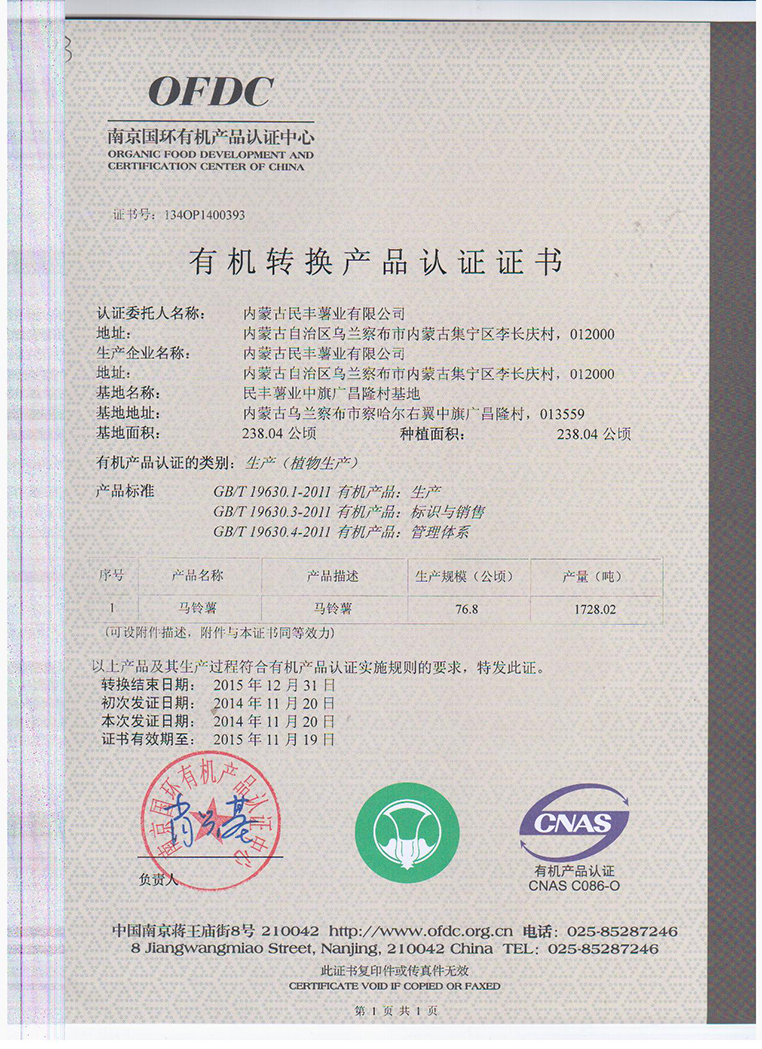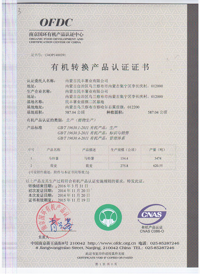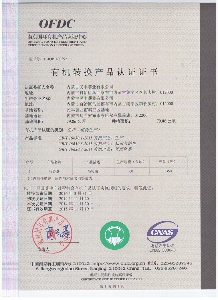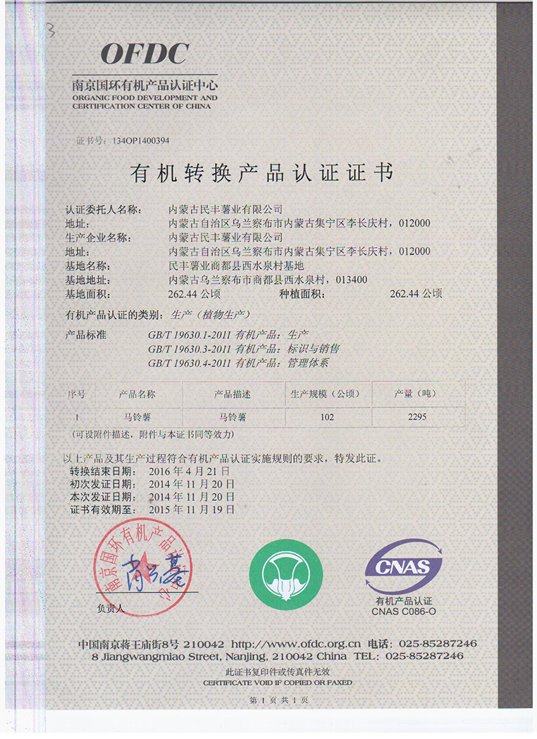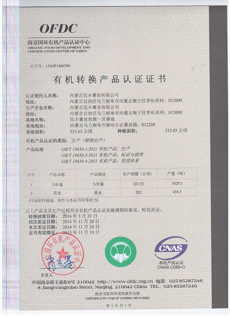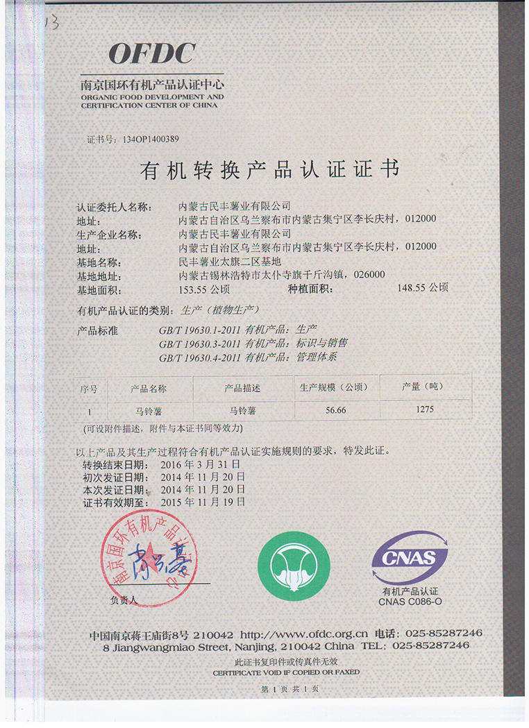 (通訊員邢志芳)內(nèi)蒙民豐種業(yè)有限公司于2019年被確認(rèn)為蒙字標(biāo)烏蘭察布馬鈴... [詳細(xì)信息]