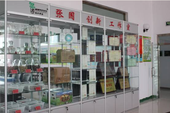 創(chuàng)新工作室建立在馬鈴薯研究院,以自治區(qū)勞動(dòng)模范總經(jīng)理張國命名。工作室設(shè)立了成果展示柜,集中展示了工作室成立以來總經(jīng)理張國和我公司在馬鈴薯領(lǐng)域科研發(fā)展領(lǐng)域方面取得的創(chuàng)新成果和獲得的榮譽(yù)。工作室組織機(jī)構(gòu)、工作計(jì)劃、目標(biāo)、內(nèi)容、簡介、科研課題項(xiàng)目管理制度、管理辦法全部上墻,分別掛牌成立了實(shí)驗(yàn)準(zhǔn)備室、病理鑒定室、理化分析室、育種資源室和脫毒培養(yǎng)室。